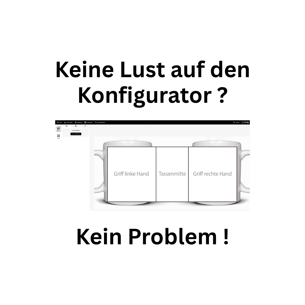 3️⃣ Sag uns kurz, ob der Druck beidseitig oder mittig gegenüber dem Henkel erfolgen soll.